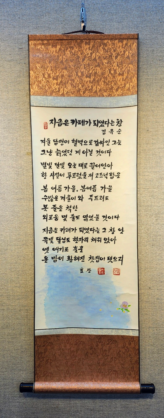 두루마리 작품 "지금은 카페가 되었다는 창"은