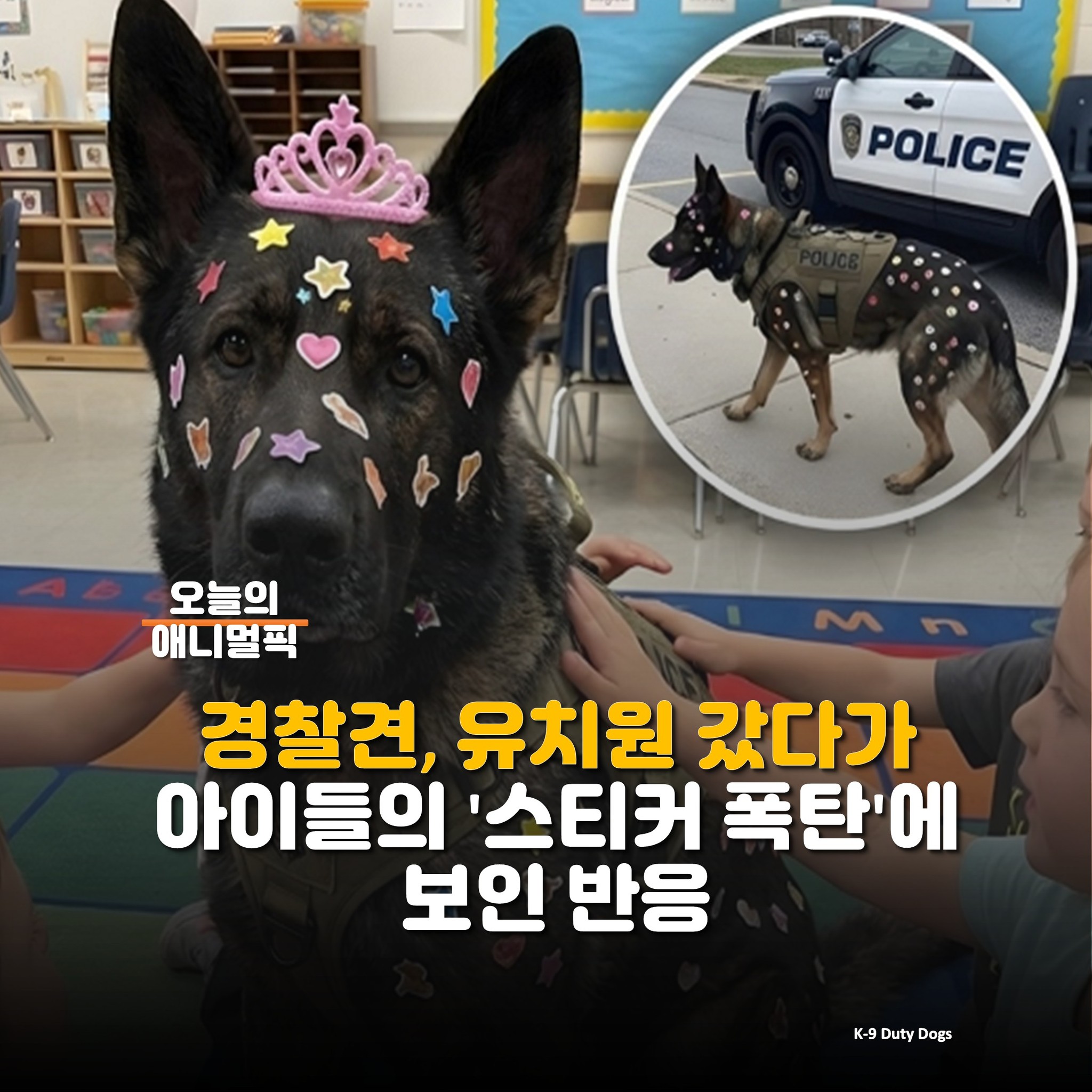 경찰견, 유치원 갔다가 아이들의 '스티커 폭탄'에 보인 반응]