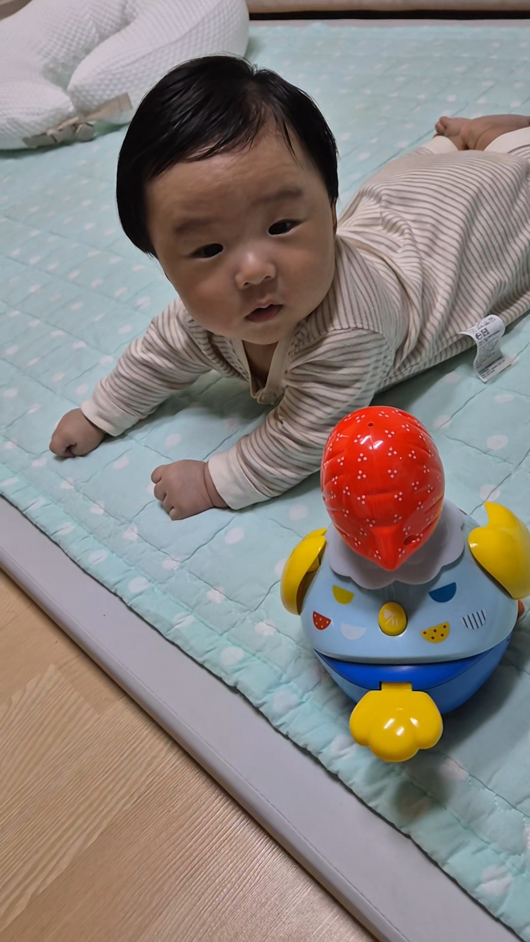 까꿍! 하면 하하하 웃을 줄도 알아요. ^^ 뒤집기 연습 중